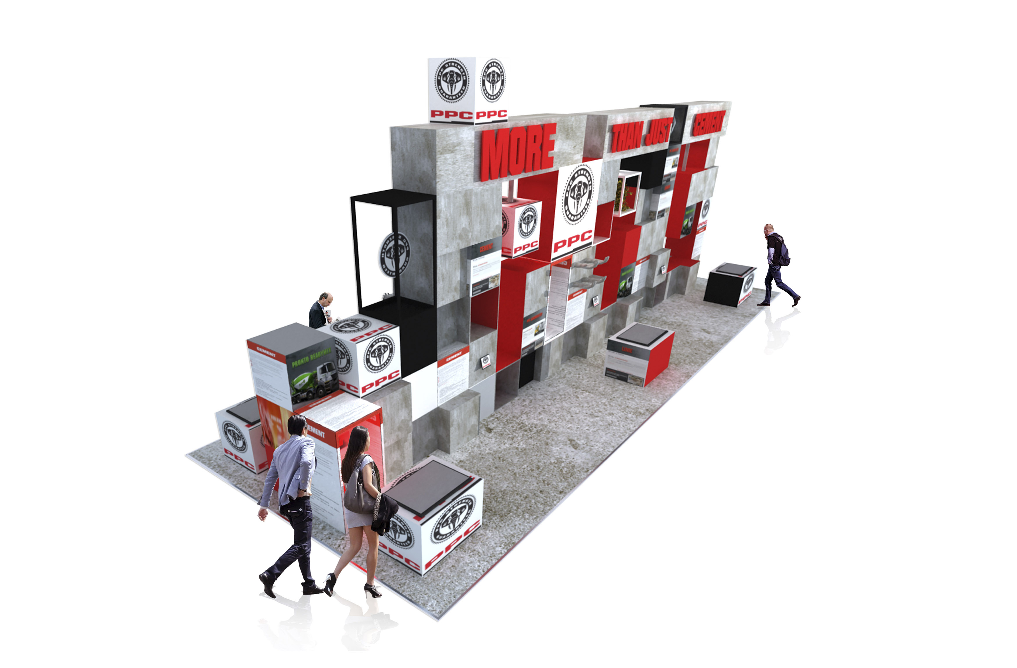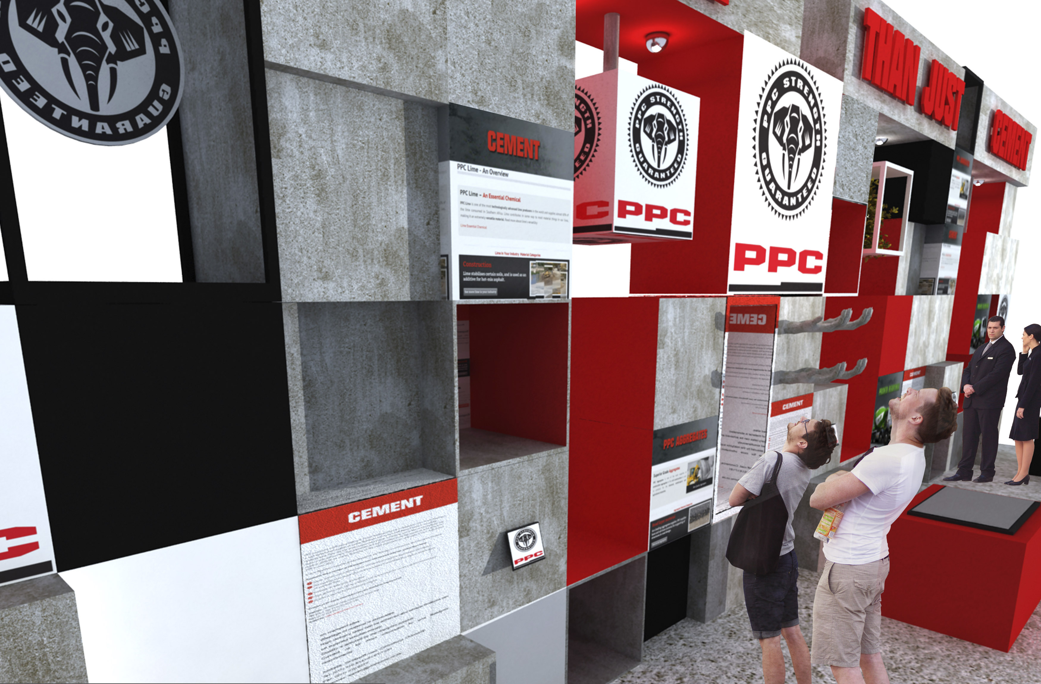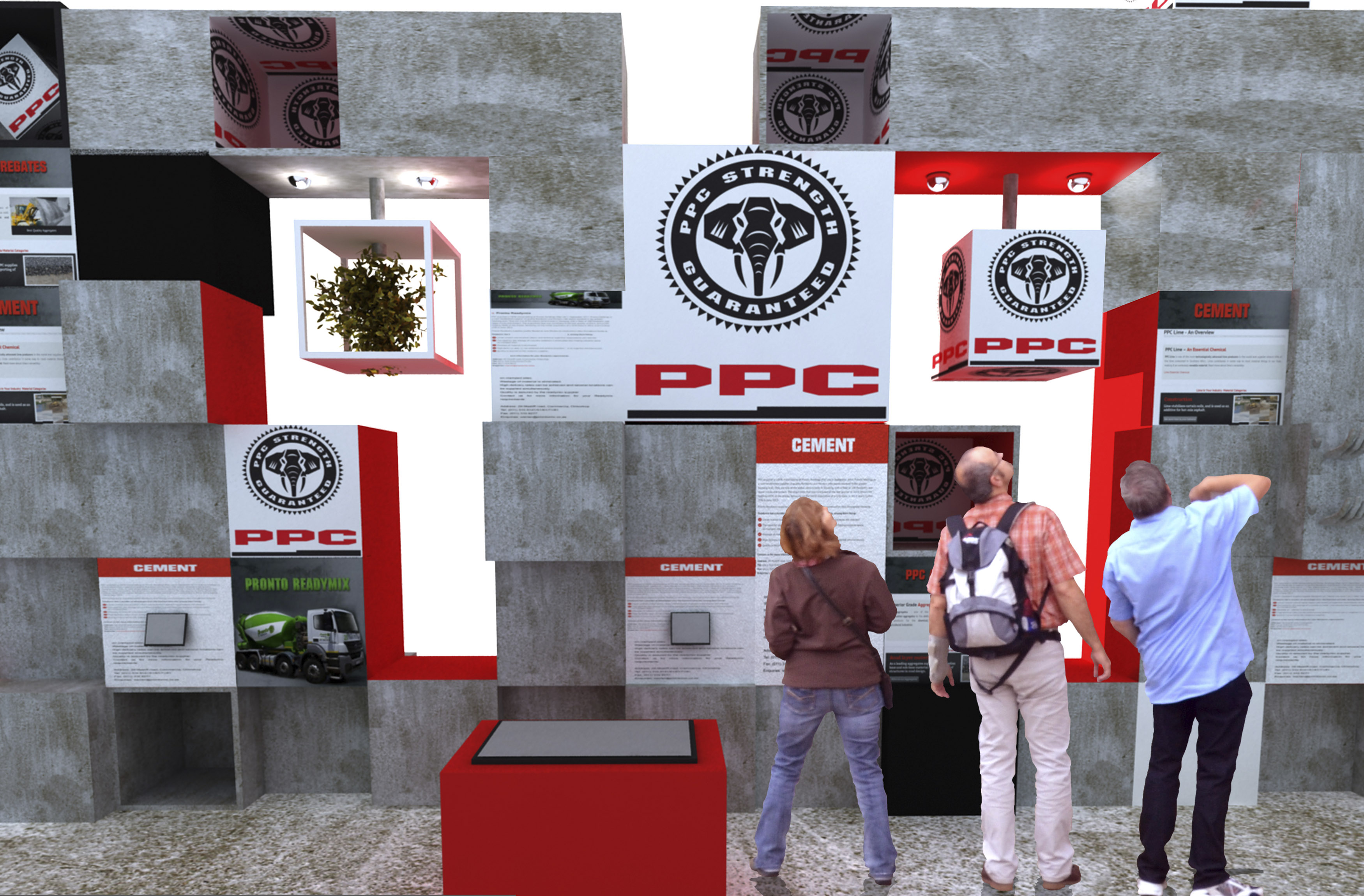 Come up with a design that is hugely impactful and clever, a genius concept that embodies an interactive exhibition display for PPC where deligates can use their senses to connect with the product. Exhibition pitch for Totally Concrete