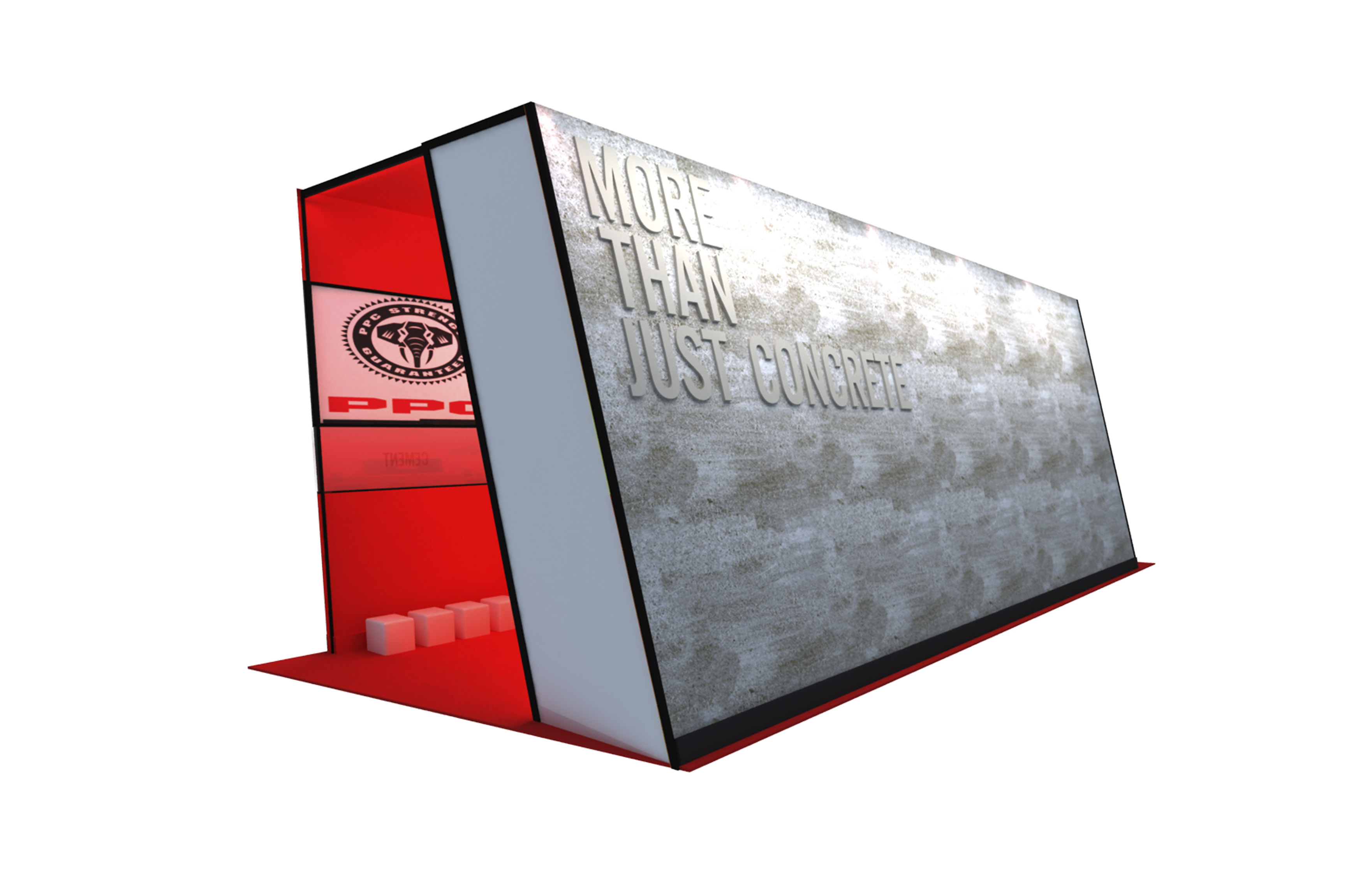 Come up with a design that is hugely impactful and clever, a genius concept, designa and interactive exhibition display for PPC where deligates can use their senses to connect with the product. Exhibition pitch for Totally Concrete